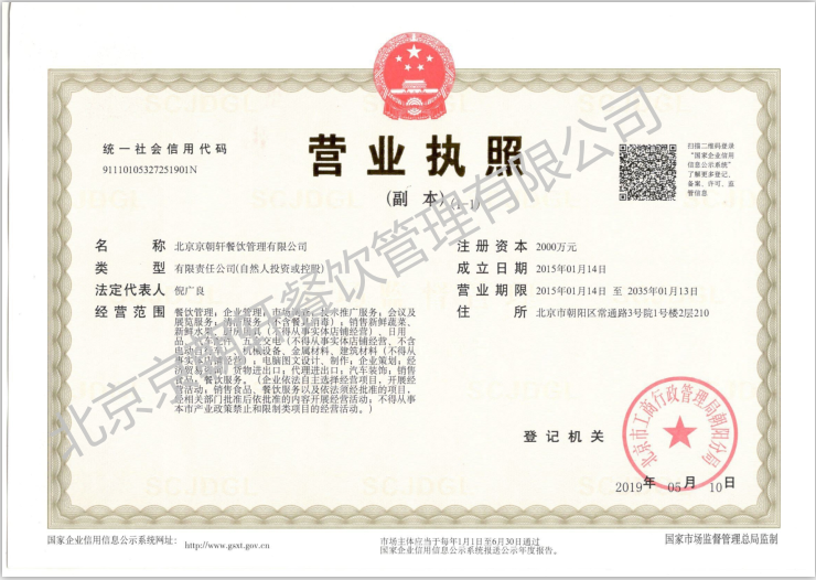 北京京朝軒餐飲管理有限公司是一家專(zhuān)業(yè)的餐飲管理公司,主要業(yè)務(wù)范圍,食堂承包、食堂托管、快餐配送、現(xiàn)代廚房設(shè)計(jì)、裝修以及餐飲人員培訓(xùn)、輸出一體化的綜合性后勤服務(wù)企業(yè)。 公司是以北京市朝陽(yáng)區(qū)為中心輻射全國(guó)的連鎖企業(yè)。公司注冊(cè)資金2000萬(wàn)元。 歷經(jīng)多年的實(shí)踐和發(fā)展,從最初的一群伙頭軍到現(xiàn)在形成網(wǎng)絡(luò)組織的餐飲精英管理團(tuán)隊(duì),公司發(fā)展成為擁有20多個(gè)連鎖網(wǎng)點(diǎn)的規(guī)?;髽I(yè)。 經(jīng)過(guò)多年的努力奮斗,創(chuàng)造了燦若星辰般的奇跡和輝煌,其發(fā)展歷程仿佛就是現(xiàn)代餐飲業(yè)發(fā)展的縮影和代表。